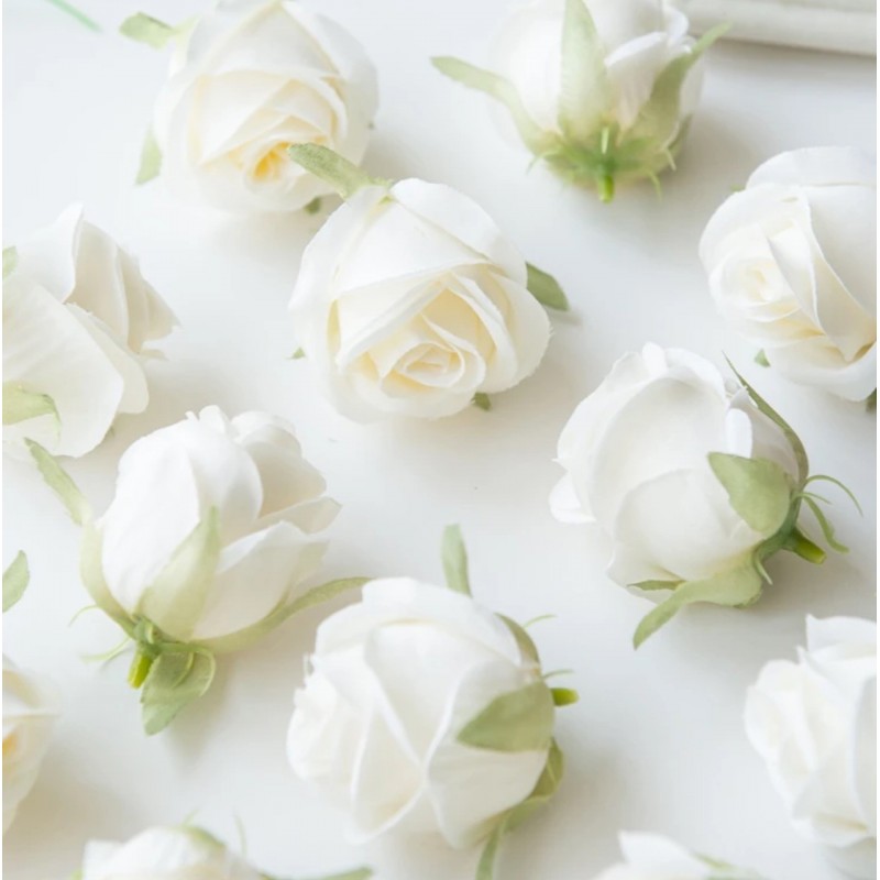 SET 5 FLORES ROSAS BLANCAS CAPULLOS 5 CM DECORACION