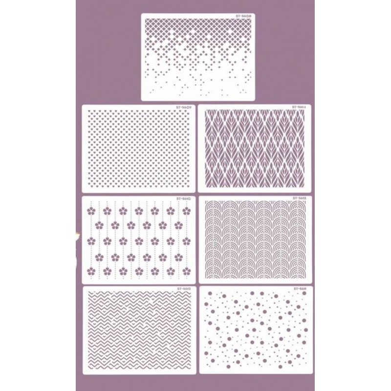 SET 7 STENCIL MIX DECOR, FLORES, LETRAS, MUSICALES...