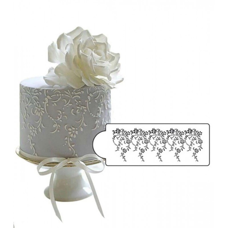 STENCIL PARA TARTAS "CENEFA RAMOS COLGANTES RIZADOS"