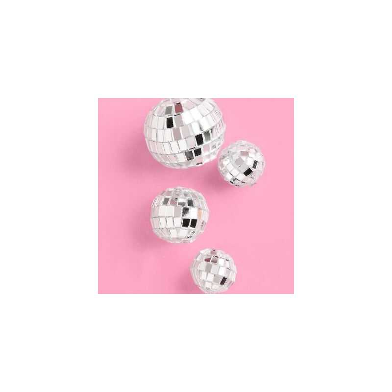 PACK 3 BOLAS O BURBUJAS TOPPER DECORACION DISCOTECA PLATA ESPEJO CON PALO