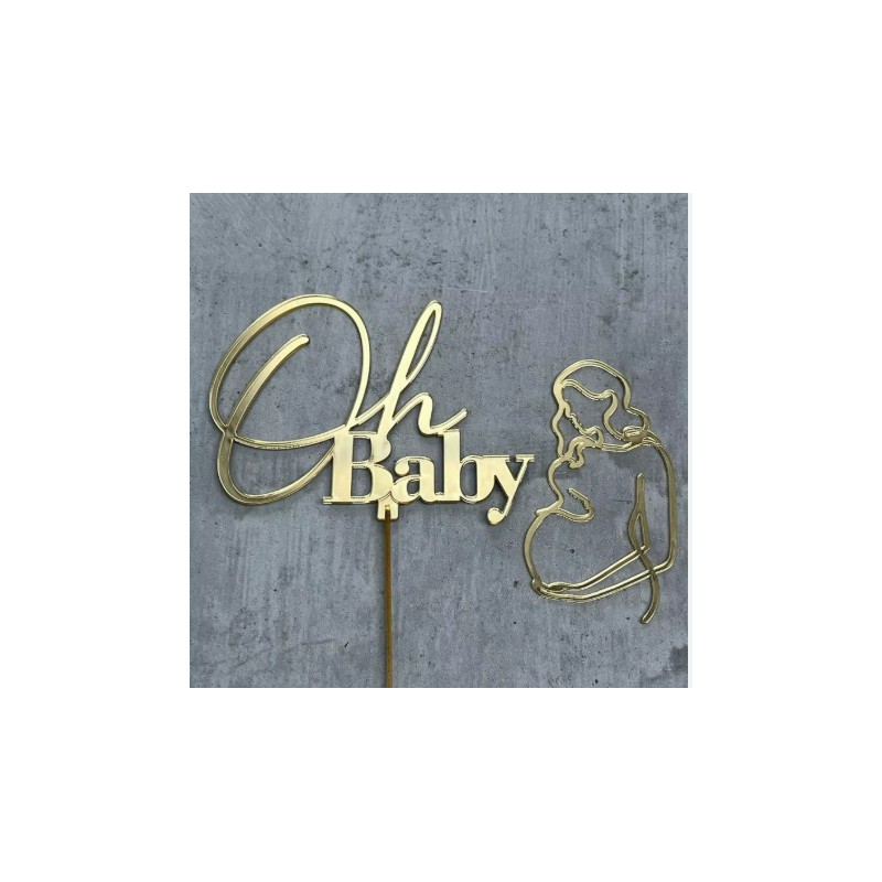 TOPPER OH BABY Y MUJER MAMA EMBARAZADA PARA FRENTE ORO