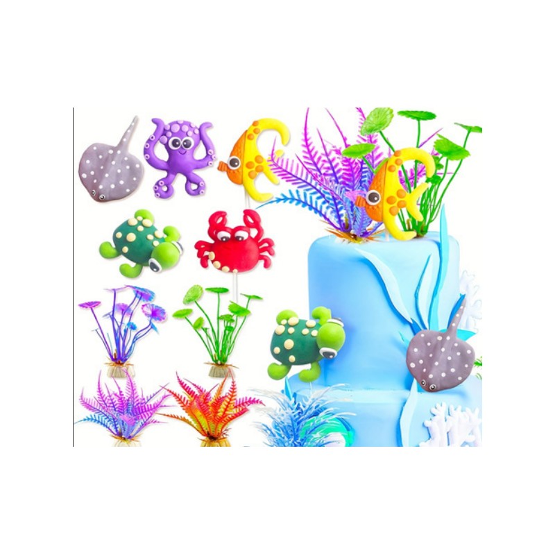 SET 9 TOPPERS 3D ANIMALES MARINOS