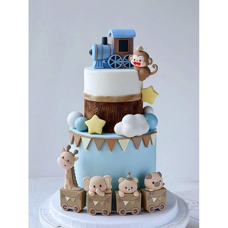 SET TOPPER 3D TREN MARRON CON ANIMALES Y MONO ESCALADOR