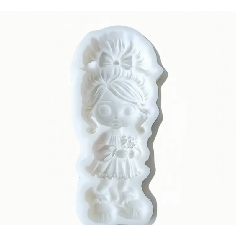 MOLDE SILICONA NIÑA CON COLETA Y FLORES