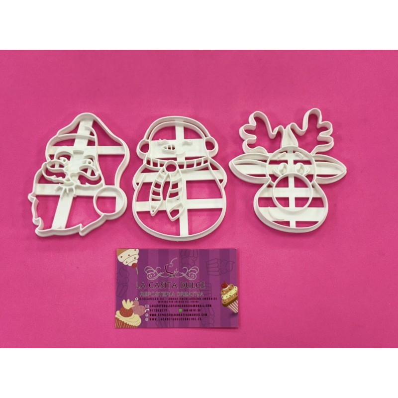 SET 3 CORTADORES NAVIDAD CON MARCADOR RENO PAPA NOEL Y MUÑECO DE NIEVE