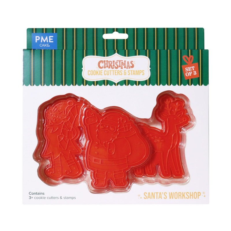 ¡Crea lasgalletas de Navidad más alegres usando estos Sets de Cortadores y Sellos de PME! Fáciles de usar, simplemente presiona y suelta. Para mejorar, pinta con colores comestibles o añade detalles en fondant para un efecto en 3D. Lávalos a mano con agua tibia y jabón para una limpieza fácil. Ya sea que estés organizando una fiesta de Navidad o horneando para las fiestas, ¡deja que PME añada magia!