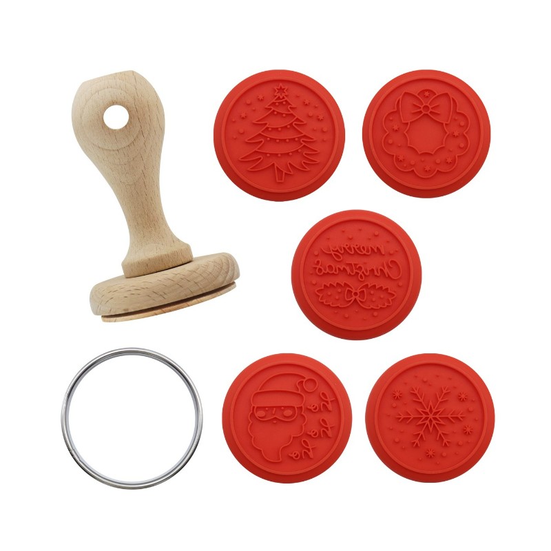 SET SELLOS SILICONA NAVIDAD CON MANGO MADERA Y CORTADOR PME