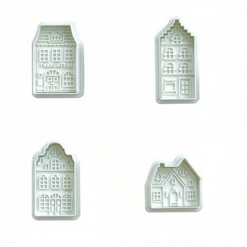 SET 4 CORTADORES CON EXPULSOR NAVIDAD "CASAS NAVIDEÑAS"