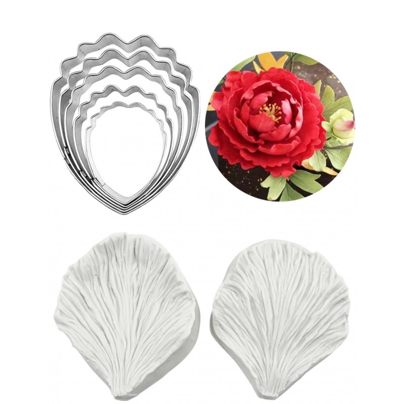 SET 5 CORTADORES PETALO PEONIA Y TEXTURIZADOR DOBLE GRANDE