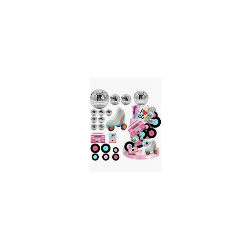 PACK TOPPER DECORACION BURBUJAS Y DECORACIONES PATIN ROLLER DISCO MIX