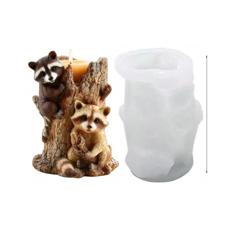 MOLDE SILICONA MAPACHES EN ARBOL 3D