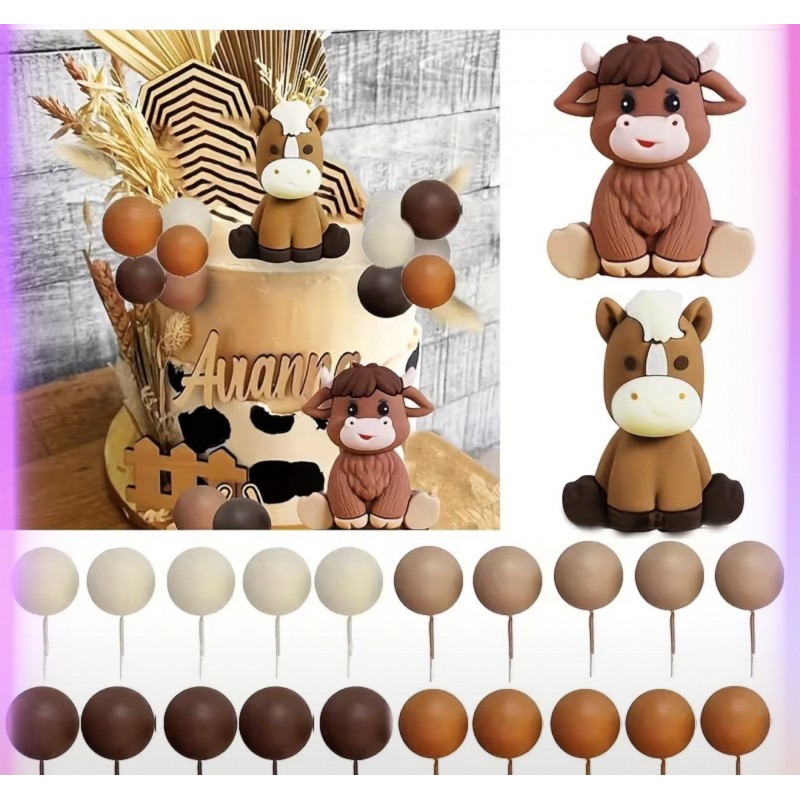 SET TOPPERS 3D ANIMALES DE LA GRANJA VACA Y CABALLO Y BURBUJAS