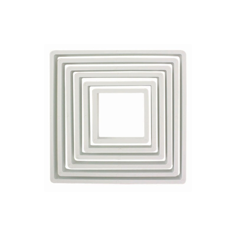 Prácticos cortadores de plástico cuadrados de PME. Son perfectos para cortar la masa de galletas, mazapán, fondant y cualquier postre. Estos cortadores son fuertes, lo que los hace ideales para los niños.