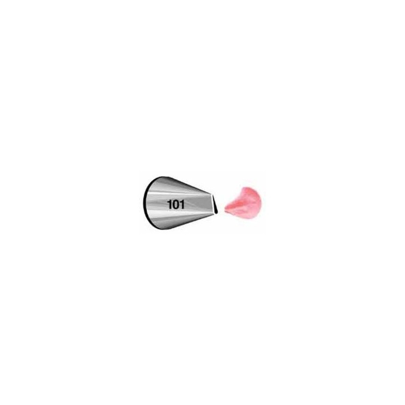 Boquilla metálica de Wilton para realizar un diseño de pétalo de flor estándar.
