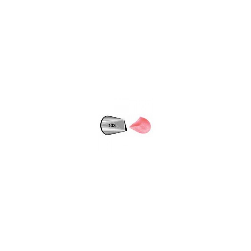 Boquilla metálica de Wilton para realizar un diseño de pétalo de flor estándar.