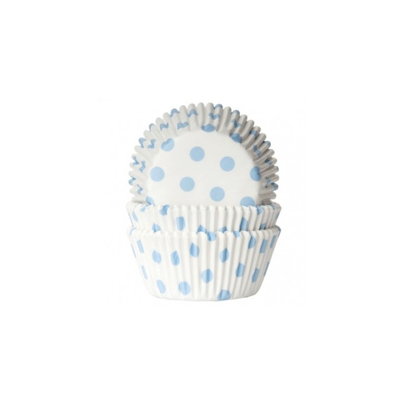 50 CAPSULAS CUPCAKE BLANCAS CON LUNARES AZULES HOUSE OF MARIE