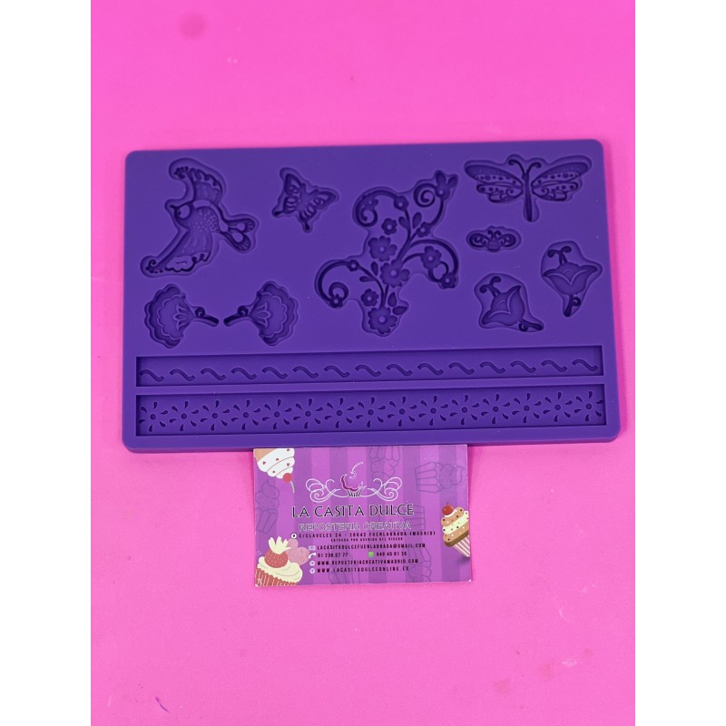 MOLDE SILICONA PLACA PAJAROS, MARIPOSAS Y FLORES